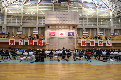 会場には各市町村体育協会の方々や体育功労の皆様また国体や世界大会などで顕著な成績をおさめた方が大勢ご参集の中で盛大に開催されました。 個人はもとより市町村の威信をかけ常日頃の練習の成果をいかんなく発揮し優勝を目指して頑張っていただきたいと思います。