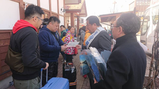今日は第6回の富士山の日街頭キャンペーンを富士急行線河口湖駅で行いました。